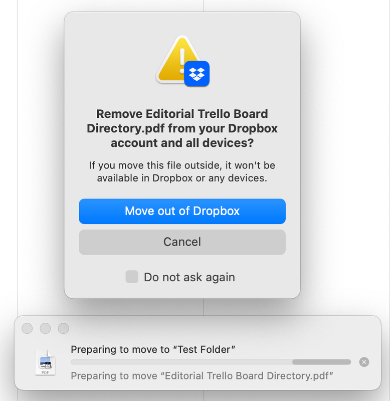 Here's how my file structure works (I have a feeling this has something to do with it, and this may well be extremely suboptimal by Dropbox's new standards): Like most MacBook users, I work out of three main folders: Documents, Downloads, and Desktop. Right now, the Downloads and Desktop folders in my MacBook user folder are synced with folders of the same name located in "My Mac([Computer name].local)". I can make changes in the user folders and see them reflected in Dropbox folders. That's how I've worked with it for many years, and I suspect that the latest update doesn't like that very much because the update said something about separating Backups from Sync entirely. It's possible I've misinterpreted something here, so please let me know if you know better, but that was my understanding of the reason for moving files with the update.