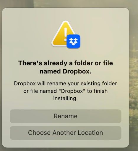Because of that message I have not proceeded, since it appears it would create a nested structure such as: /Users/xyz/Library/CloudStorage/Dropbox/Dropbox