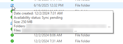 If you right-click on these folders, is there any option to make them available offline from your context menu? What is the state of the files when you access one of these folders, and what icons do you see next to them?