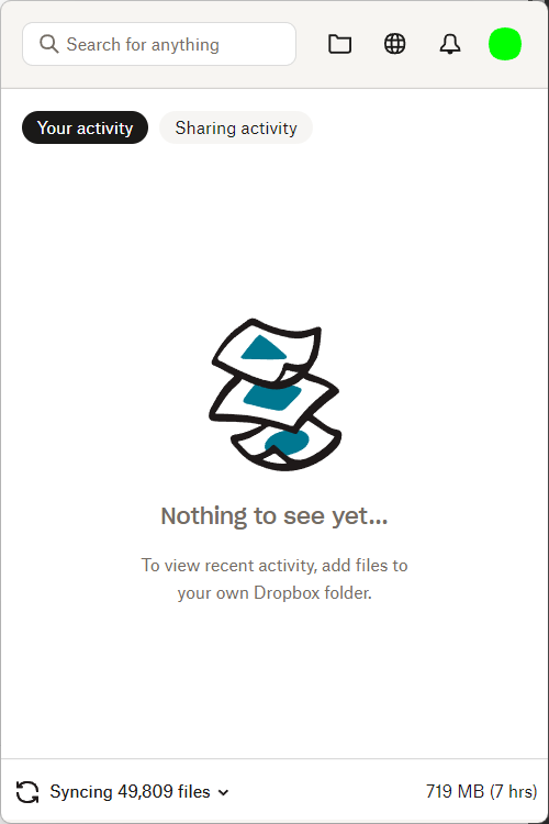 I had a similar issues y'day - came in and realized all the work I was doing wasn't able to be viewed by colleagues I shared files with bc everything was still syncing on my computer. Things also "appear" differently in my Windows Explorer, so I suspect Dropbox pushed out some sort of update and it ain't workin' quite right. Files I edit are taking SO LONG to sync and it's preventing me from sharing new, important drafts with leadership for an announcement.