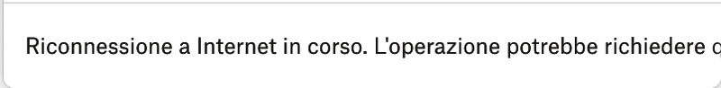 The app is stuck at launch non-syncing. At the bottom of the dropdown window from the menu bar is a message stating, translating from Italian, "reconnection in progress. this could take...".