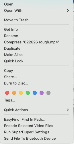 Not that long ago, I used to be able to drag an .mp4 file (or any file) into the Dropbox folder in my Sidebar, wait a few seconds, right click on the file and select "get Dropbox link", then paste that link into an email I could send to my partners so they could download and view it.