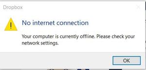 "No internet connection" error on my PC Dropbox - won't finish installing