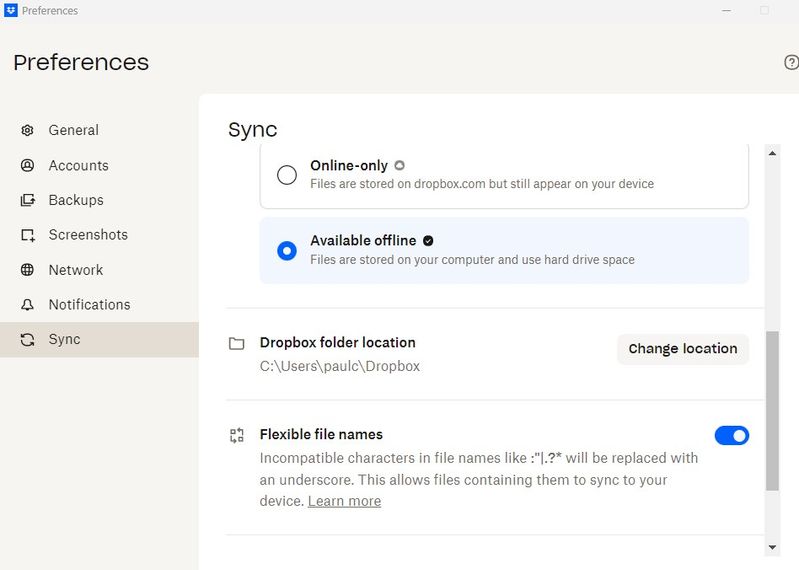 I added a Word document todayon my desktop. It synced to Users\paulc\Dropbox(Old(1)). But the icon for this is an ordinary file folder. But there's no sign of it in the folder with the blue Dropbox icon.