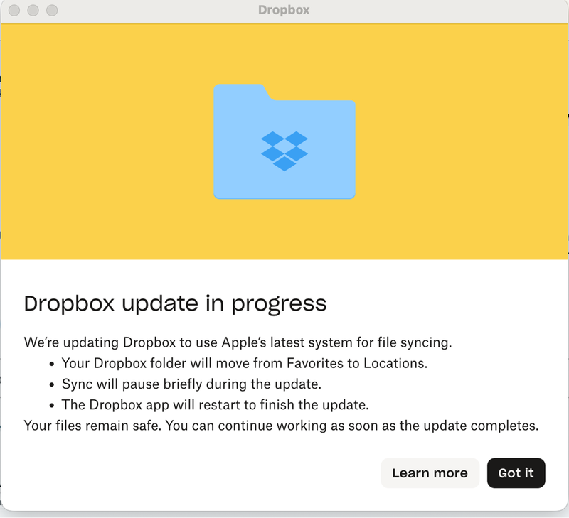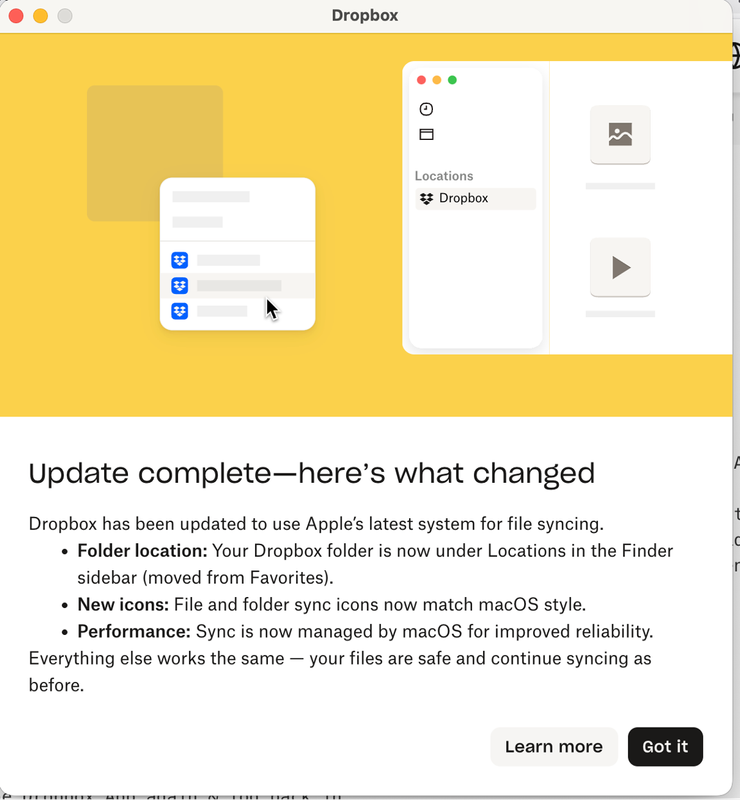 Application Affected - Dropbox Desktop for Mac Device - Macbook Air Operating System/Browser (if using the web) - Mac OSx Tahoe 26.2 Dropbox App Version (if using the app) - whatever the latest ve...