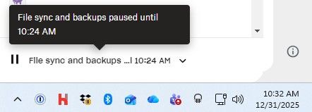 It does say something like "File syncing and backups paused until 1:11 P...