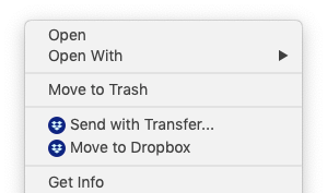 A somewhat-recent version of Dropbox for macOS has added the new menu item "Send with Transfer..." when right-clicking any file on your Mac, not just files in Dropbox.