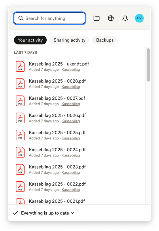 Hi Søren, what is the version and status of the Dropbox desktop app as shown in your menu bar?