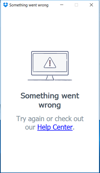 Thanks for getting in touch on the Dropbox Community about this issue!Seems what youâre experiencing is due to the connection to our server being blocked or interrupted. As a first step, Iâd recommend having a look at your settings locally, since it seems like an antivirus, firewall, security program, proxy or VPN is blocking the Dropbox desktop. Can you make sure that these steps are followed for the configuration of your firewall if youâre on a working environment and that the domains listed here are allowed or whitelisted?Should the above steps fail, then please try installing the newest version of the desktop application (32.4.xx) to see if the issues is resolved:Please let me know the results in your reply!Warm regards,JaneA