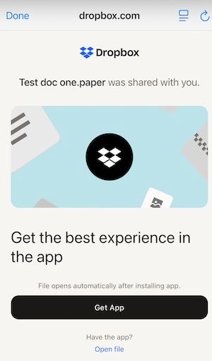 I don’t know if anyone cares, but using web access to Paper on my iPhone 16, I get an odd problem. If I click on a link I made to different Paper doc, I sometimes get sent to a page that says: "this doc was shared." And it says: "Get the App.”