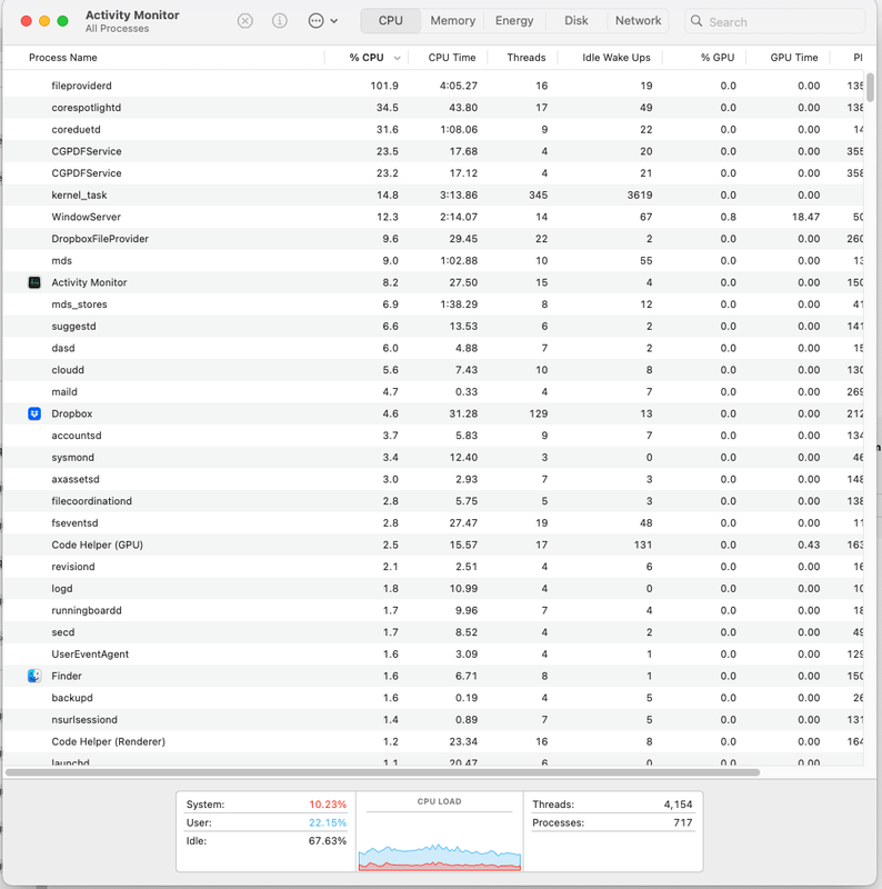 Each time I restart my Mac, Dropbox goes through reindexing of (seemingly) all files in my folder. The Mac's CPU usage goes up and the fan kicks in - it makes the computer slow for at least 15 minutes. It does finally complete, but it would obviously be much better if this did not happen.