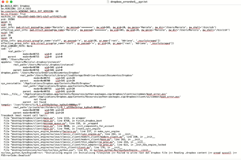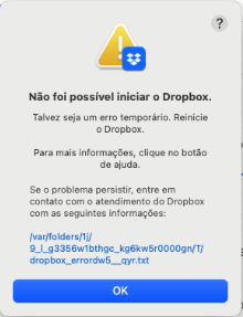 The Dropbox app throws a startup error on MacOS 13.7.1.