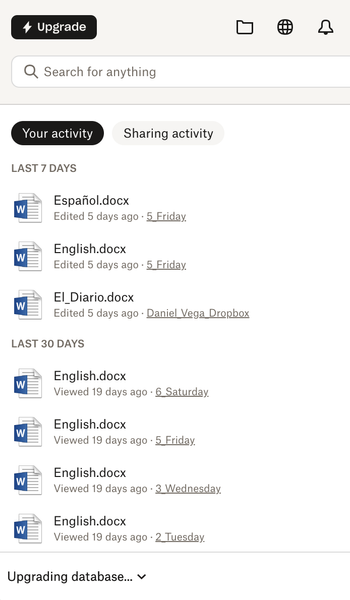 The Dropbox desktop app is stuck at "Upgrading Database" on MacOS