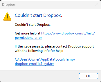 The Dropbox desktop app won't start or sync on Windows 11
