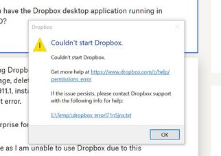 I had already tried Advance Reinstall option wout any luck. Infact, post Adv Reinstall, I was getting a different error popup with the link to logs to share with Dropbox support. Logs are as above. Now Dropbox doesn't start only as per screen shot below. There is some bug in your app which you need to fix. Till then disable the Windows 7 etc support popup.