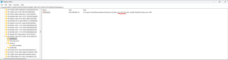 That folder referenced does not exist. The dropbox folder is C:\Program Files\WindowsApps\DropboxInc.Dropbox_234.4.5591.0_x64__xbfy0k16fey96