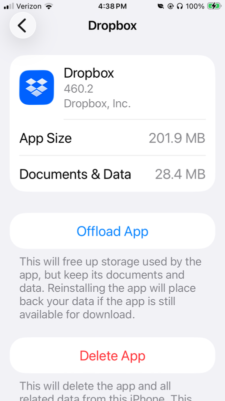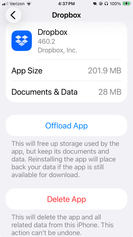 The Dropbox mobile app is filling up my iPhone storage