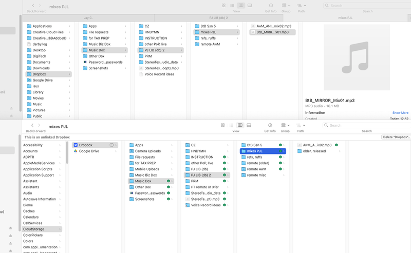 Now I have two different Dropbox accounts. The new dropbox is visible in my Finder, the old one’s in ~/Library/Cloud Storage.
