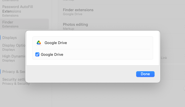 Hi Nancy. I started following these steps, but got stuck at "Finder Extensions." It only sees my Google Drive Finder exts, no DB (see attached). Which is strange, seeing how in the last week I've un-/relinked db twice and updated the DB app itself. Any idea how to get that back (preferably without un-/relinking)?