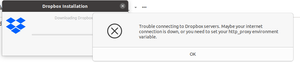 "Trouble connecting to Dropbox servers", while installing app on Linux OS