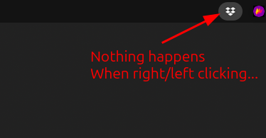 I do have that extension installed, on Fedora 40, and the situation is the same as you originally reported — nothing happens when I click the icon. When I deactivate the extension, the Dropbox icon disappears entirely, as I'd expect.