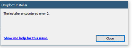 Unable to install Dropbox on Windows 10 - The installer encountered error 2