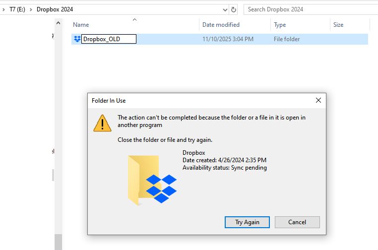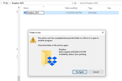 I just want to know what happens if I click "Rename"? What does Dropbox do with the old files, and what will it do AFTER it renames the folder? Will it redownload all my files to a new folder? Will the old folder still be there? Will it actually try to merge the files? Please give me details so I can understand the entire process and not lose my files.