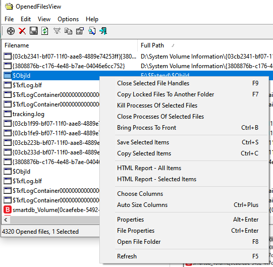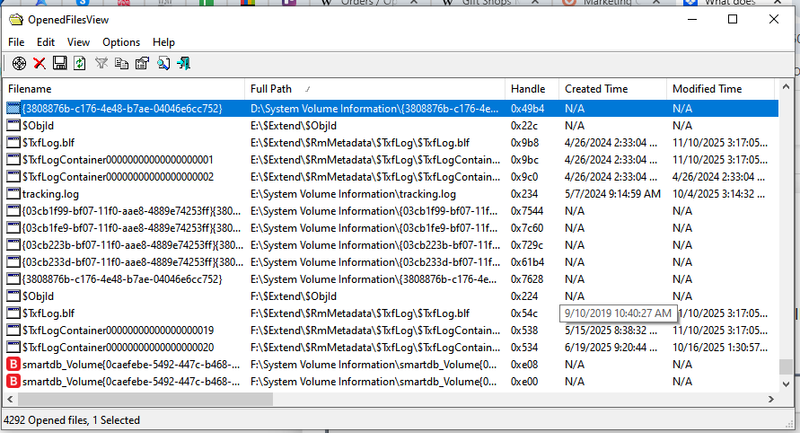 I closed and reopened Explorer window and at each step as I tried to rename the folder I refreshed OFV and nothing changed at any one of those steps, so it must be one of these items thats' affecting it. Does anyone know what they are without me killing them randomly and potentially screwing something up?