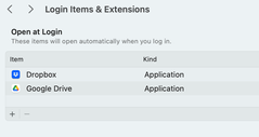 Has anyone had the experience of setting drop box to startup items on a mac and then added Google drive too. Google stays put in the login items but I maybe nut but Drop box disappears rom the login items.....Could someone try this too. I am using Sequoia 15.3...and a Mac Book Pro.....