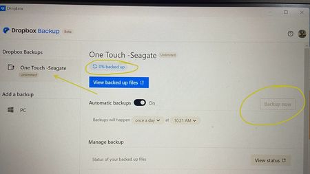 Hi, I just bought a Seagate HDD and I wanted to backup on dropbox. it has unlimited storage offer but when I connect, its stuck on 0%. Its 11am here and the backup should start 10:21am as activated. ...