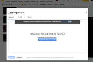Having problems lately with importing images via Insert > Images > Upload. Can you please take a look, our team and external parties having trouble with this error. Luckily dragging an image works at...