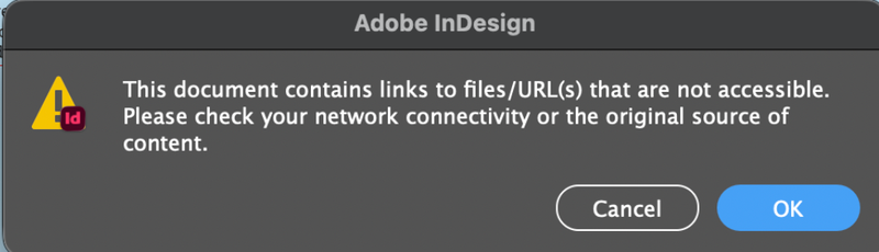 This was just the beginning. Now every single time I open an InDesign document from Dropbox, all the links is just shown as blank, like there is nothing there. It's just like a white new document, with nothing there, only the text. Nothing is linked anymore, and I have to link every singe images again. Let's say I have 50 images in a folder, it doesn't link everything at once, which is crazy annoying and extremely time consuming. Sometimes when I open a document in InDesign it seems fine for one second, but then all the images shows up like "crazy art" (screenshot 2) After I link an image, it seems to be okay the next time I open the document, luckily. But I have a lot of book projects and it's a crazy amount of time fixing everything manually.