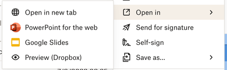 Hi. When using the Dropbox browser interface, I'm missing the option to open apps in the corresponding Office desktop app. I can open in "xxx for the web" - but need it opened in the desktop app. I'v...
