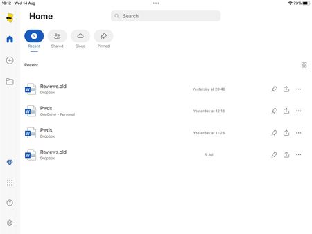 My MS Word and Excel apps on iPad still show files I've deleted from Dropbox.