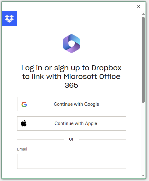 Remove Dropbox login popup when opening an Excel file from my desktop app.
