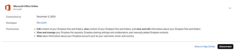 - Members that did integrate at some point with the API app and later decided to remove integration, should go to https://www.dropbox.com/account/connected_apps and manually disconnect Microsoft Office 365 app. See attached screenshot.