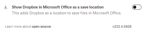 You can also check your Dropbox application's own settings for options related to Office integration.