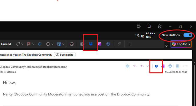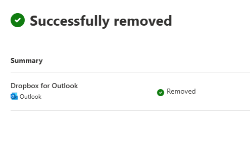 Thanks for the update. I'm glad to hear that the change has removed the Dropbox add-on in Outlook.