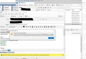 Hi Megan, thanks for your quick response. This was happening to multiple email addresses that we were sending from at one point. I have been in contact with our email provider and have since updated our SPF records and SPAM filtering system and it seemed to have help with a few email addresses that we were sending from. At the moment it currently seems to be singled out to be just a specific email address on a workstation. Not sure how that is possible. I can send the same email from my workstation with the dropbox file link service through Thunderbird just fine, but when we try it on another workstation with a different email address it comes up with this error. I am quite confident that this is not an internal issue. Hope this helps:)