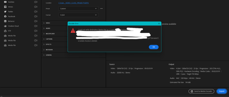 Unable to Export Video to Destination Folder