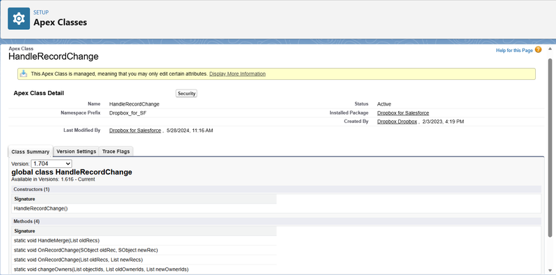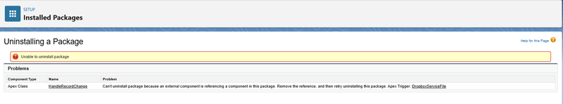 Uninstalling Dropbox in Salesforce