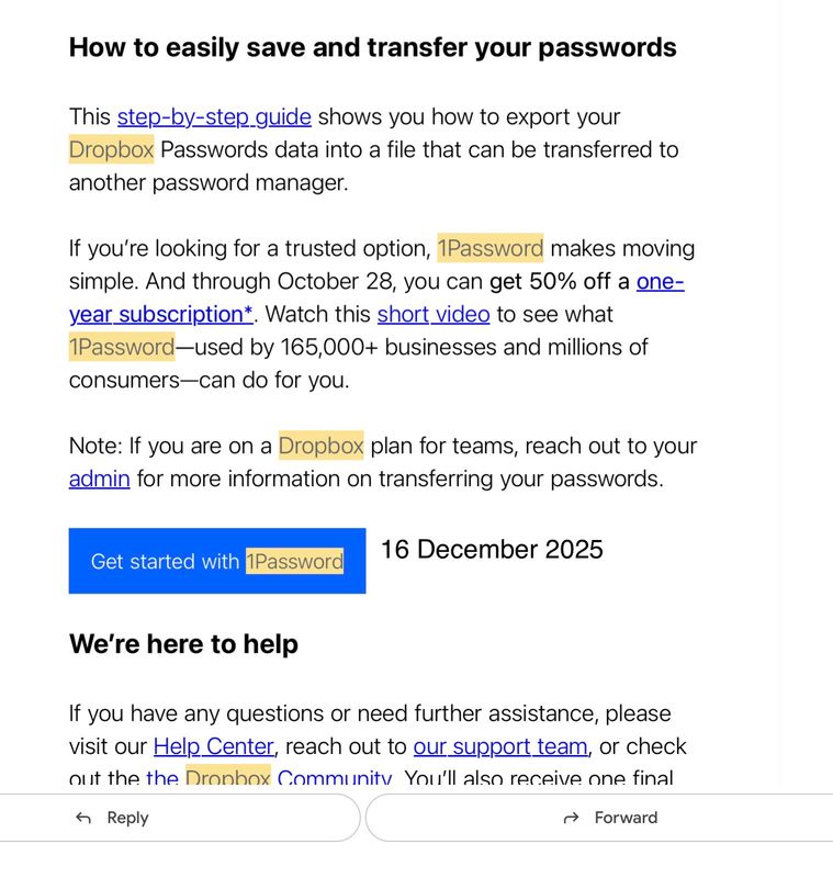 Yes, it was an email sent by Dropbox. I’ve emailed them for this but there’s no reply as yet.