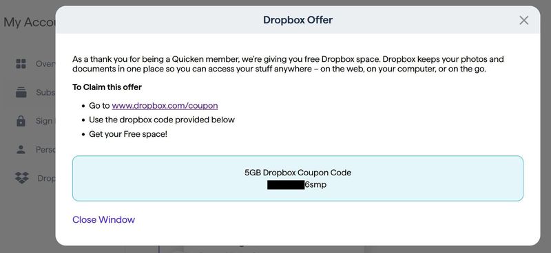 This coupon is shown on my Quicken account management page, as of a few minutes ago. (Redacted screen shot attached)