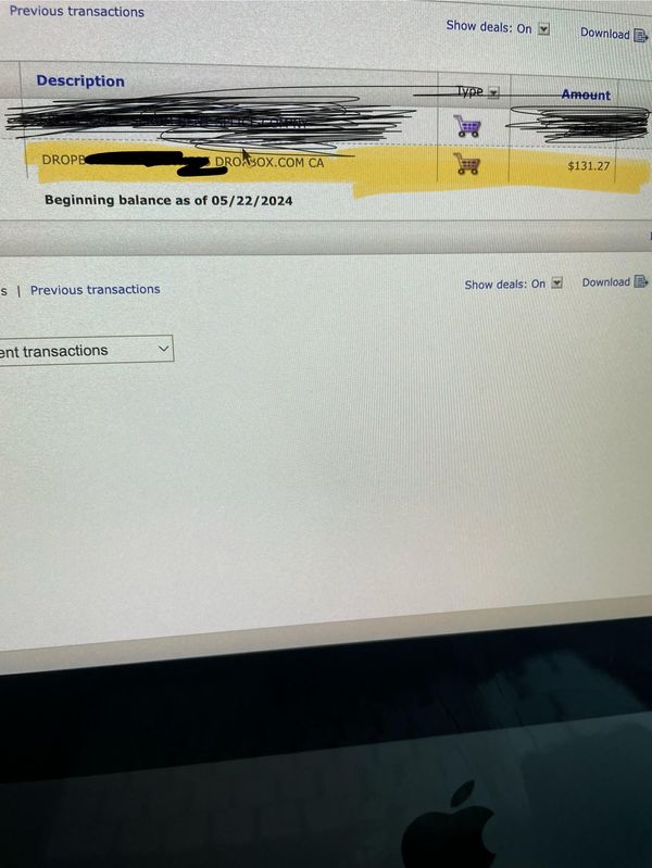 Originally, last month I went on my my desktop computer and went on the Dropbox website and applied for the 30-day free trial. This morning, I checked my bank statement and it said a transaction was made for "$139.00" from Dropbox. I never made this transaction I wasn't even on my computer on May 25th, when the transaction was made to Dropbox.