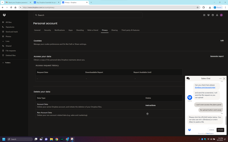My Dropbox Essentials Trial is supposed to end on June 11th.  I keep trying to cancel but it keeps giving me an error message.  I can't even change my plan if I wanted to.  Please help.