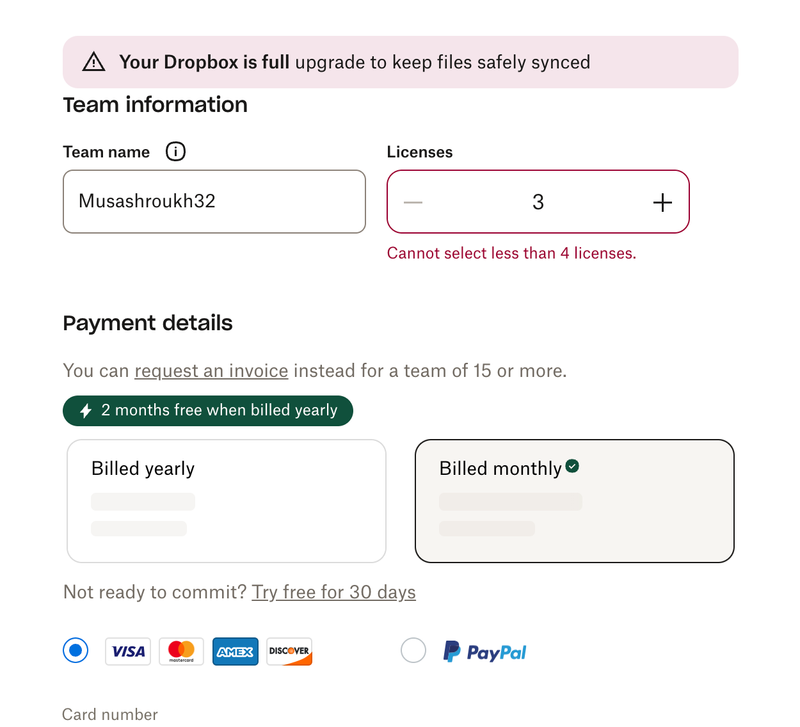 I have a team of 3 including myself I want a team account but it says the minimum is 4 licenses.