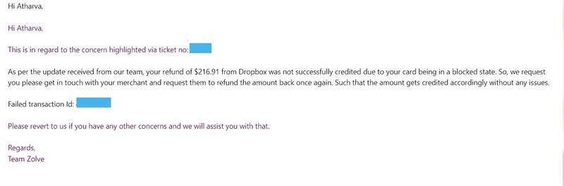 So long story short I got my refund. But, at that time my CC was blocked. So the refund couldn't come through. When I contacted my bank, they asked me to get dropbox re-initiate the same transaction. But I am not getting any response from dropbox. And now I am downgraded to a free user so I cannot chat with the customer service rep as well.