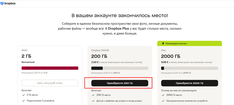 Hi! cannot subscribe for 200gb 2.50eur in month. When i tap on the button "get 200gb", i see the the promotion to buy 2Tb instead 200gb. Need help pls