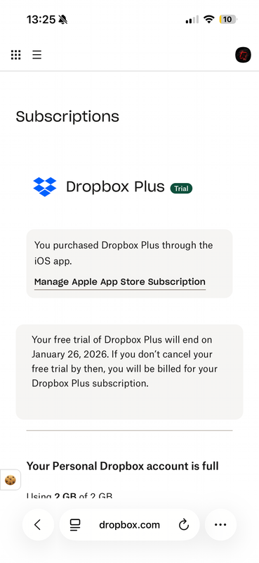 signed up to Dropbox plus on my iPhone a few hours ago and I got a popup saying my storage is full but the limit should be 2Tb and not 2gb, screenshot is attached below