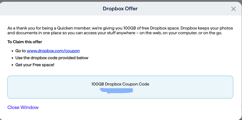 They're personal, one-time use codes. You need to have an active Quicken subscription in order to receive one, and they come from Quicken, not Dropbox.